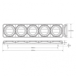 | Features | • Diffused Tail Function • Sequential Indicator • ECE Approved • IP67 100% Water proof • Voltage Range 12-24 Volt • 520mm x 141mm x 28.5mm • 5 Year Warranty |