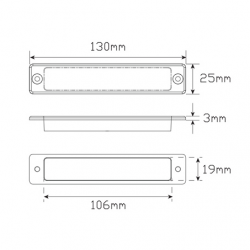 | Features | • Slimline Recessed Deign • ECE Road Approved • IP67 Rated • 12 Volt Only • 5 Year Warranty • 130mm x 25mm x 3mm |