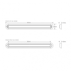 | Features | • Surface Mount • Low Profile Slimline Design • ADR Road Approved • IP67 Rated • 12 Volt Only • 5 Year Warranty • 404mm x 46mm x 17mm |